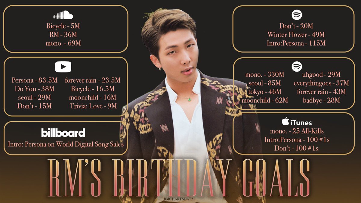 Rmcharts On Twitter For Rm Birthday This Year We Have Set Goals On Different Platforms Spread The Birthday Goals Rmbdaygoals2021
