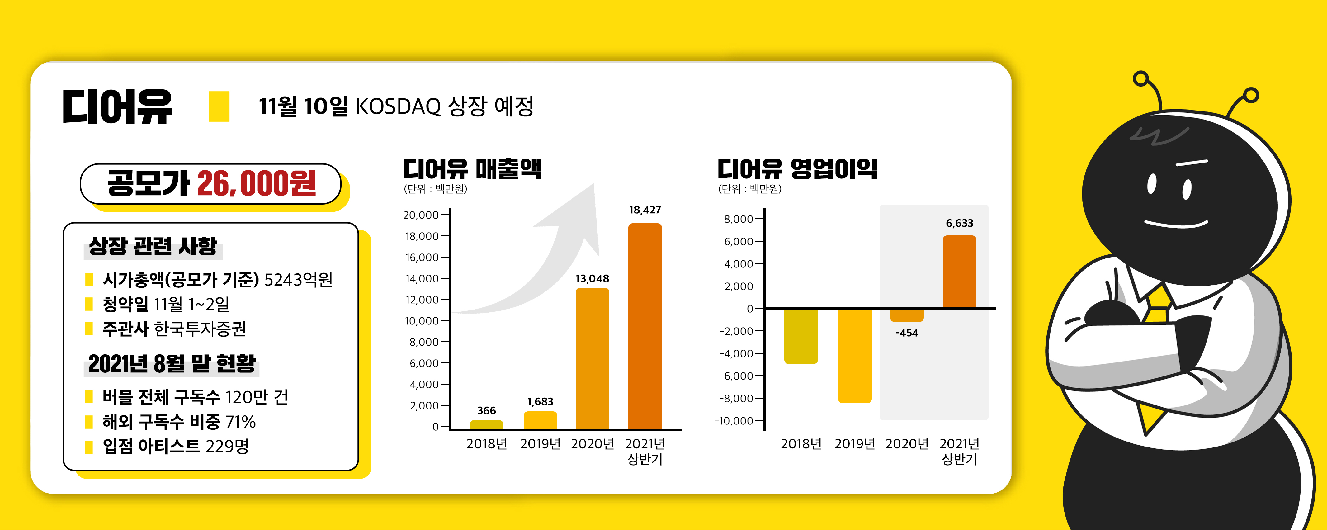 기존 채팅방에 한정됐던 소통 채널을 확장해 가상현실 속에서 아티스트와 교류할 수 있는 메타버스 공간을 제공할 예정이다. SM엔터테인먼트 자회사 디어유가 그리는 미래다. 회사의 상장 주관사는 한국투자증권이다.